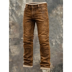 Men's Fleece Pants Trousers Winter Pants Chinos Faux Leather Shorts Pocket Solid Color Comfort Warm Outdoor Casual Daily Vintage Fashion Brown