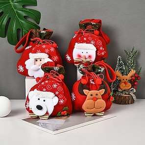 Christmas Cute Gift Bag Plush Cartoon Candy Bag 3D Doll Handheld Tote Sack Velvet Christmas Decorations Kids Party Favor Holiday Present Wrapping Accessories