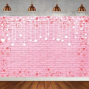Valentine's Day Pink Heart Brick Wall Photography Backdrop, Festive Holiday Banner, Perfect for Valentine's Day Party, Celebration, Event Decoration, Photo Booth Background