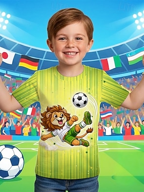 Boys' 3D Graphic Lion Football T shirt Tee Short Sleeve 3D Print Summer Spring Sports Fashion Streetwear Kids 4-12 Years Crew Neck Casual Daily Outdoor Regular Fit
