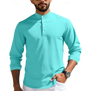 Men's Shirt Waffle Shirt Casual Shirt Band Collar Shirt Button Up Shirt Light Green Pink Wine Navy Blue Blue Long Sleeve Plain Textured Mandarin Collar Casual Daily Front Pocket Clothing Apparel
