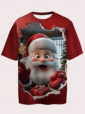 Christmas Men's Santa Claus 3D T-shirts Santa Claus Casual Street Style 3D Print Tee Sports Outdoor Holiday White Short Sleeve Crew Neck Spring & Summer Clothing Apparel S M L XL XXL XXXL
