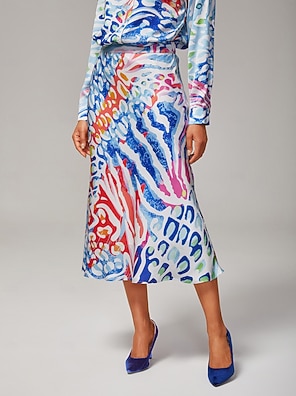 Women's Watercolor Leopard Satin Mermaid Skirt Elastic Waistband Lined Elegant Stylish Casual Bold Print Daily Work Fall
