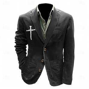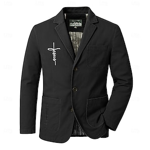 Men's Letter Printed Faith Blazer Cotton Suit Jacket Suits Coat Casual Outdoor Dailywear Multiple Pockets Three Button Stripe Lined Suit Jacket Fall Winter Notch lapel collar Long Sleeve Army Green 1