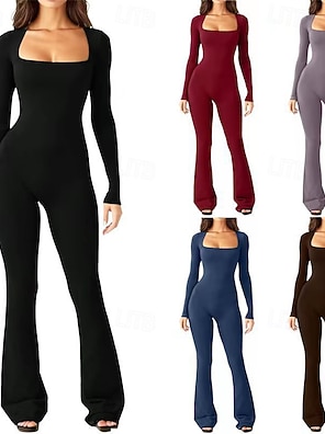 Women's Normal Jumpsuit Active Solid Color Long Sleeve Wide Leg Square Neck Daily Vacation Loose Fit Black Wine Army Green Summer