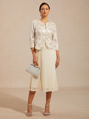 Women's Dress Sets Blazer Jacket Comfortable Embroidered Sequin Elegant Floral Formal Buttoned Front Regular Crewneck Regular Fit 3/4 Length Sleeve Outerwear Beige Spring Fall