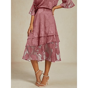 Dámské Elegantní Midi Středně vysoký pas Sukně Květinový Vícevrstvé Elastický pas Iluzivní krajka Elastické Denní Valentýn Wedgewood Léto Polyester