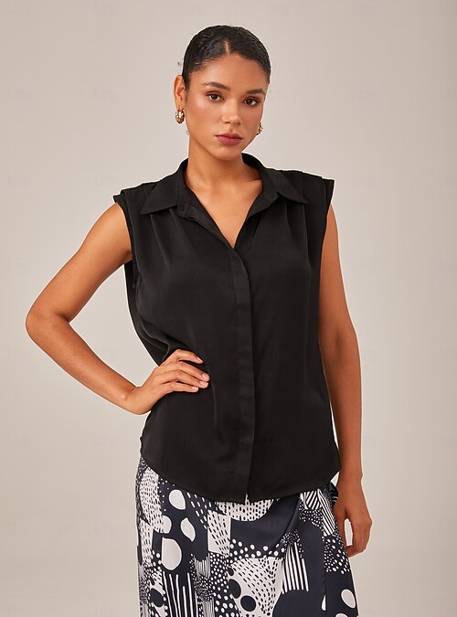 Dámské Žena Košile s knoflíkem Košile pro volný čas Kancelář Ležérní Bez rukávů Černá Knoflíky Bez rukávů Elegantní prázdniny Minimalistické Košilový límec Léto #18995195