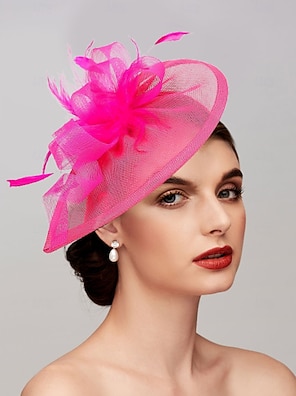 Sombreros de Fascinador Plumas Red Sombrero de Plato Boda Carreras de Caballos Día de Señoras Copa Melbourne Con Tapa de Pluma Adorno de Cabeza Accesorio para Vestido Impactante Vestido para Día de