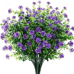 9 manojos de flores artificiales de lavanda para exteriores, resistentes a los rayos UV, de plástico, arbustos artificiales de plástico para decoración de interiores, exteriores, ventanas, hogares y