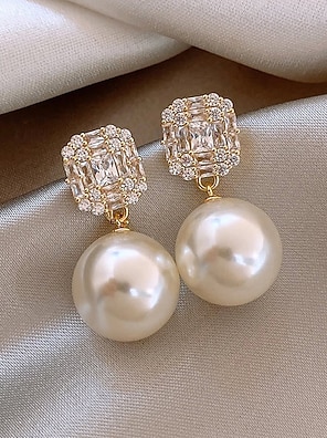 Pendientes de perlas de cristal con diamantes de imitación para mujer: pendientes dorados con un llamativo dije en racimo en la parte superior, elegantes joyas de aleación para el trabajo, citas y ocasiones formales.