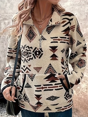 Mujer Sudadera con cremallera Sudadera con doble pelusa Grueso Templado Con bolsillos Manga Larga Deportes Geometría Camiseta por Al Aire Libre Viaje Vocación Ropa de Deporte