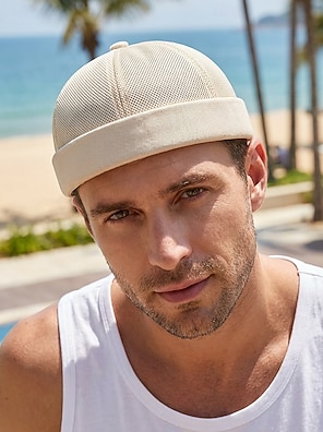 Gorro de lana transpirable de poliéster con malla para hombre, gorro sin visera ajustable en varios colores para uso diario informal, vacaciones en la playa, viajes y estilo veraniego al aire libre.