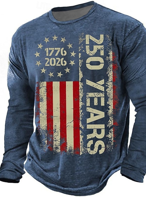 Amerikan 250-vuotisjuhla Miesten Yhdysvaltain Yhdysvaltain lippu T-paita Pitkähihainen T-paita 3D-tulostus Tiukka pyöreä kaula-aukko Paita Päivittäin Vapaa-aika Päivittäin Matkailu Juhla Sininen #10091826