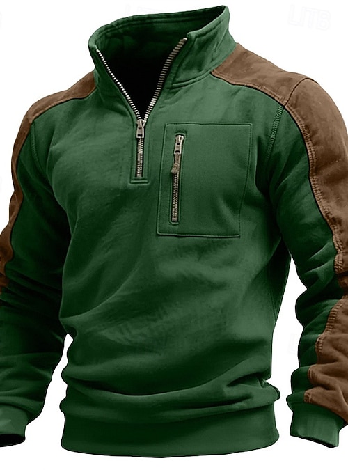 Miesten Miehet College Pullover-huppari Quarter vetoketjullinen collegepaita Taktinen Musta Viini Apila khaki Stand-kaula-aukko Puolivetoketju Väripalikka Tasku Väripaletti Kausaliteetti Päivittäin #9779473