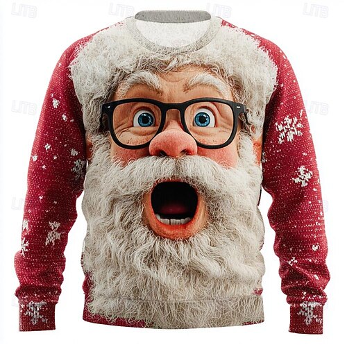Ruma joulupaita Miesten Piirretty Joulupukki Painettu Neulepusero Knitwear Pyöreäkauluksinen Vapaa-aika Loma Päivittäin Festivaali Pidä Lämmin Pitkähihainen Syksy Talvi Musta Rubiini Apila #11926265