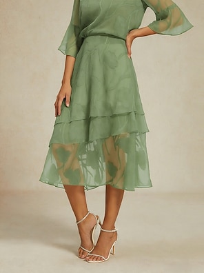 Femmes Jupes en satin Élégant Maxi Taille Moyenne Jupes Micro-Élastique Cocktail Invité de mariage Vert mousse Été Satin