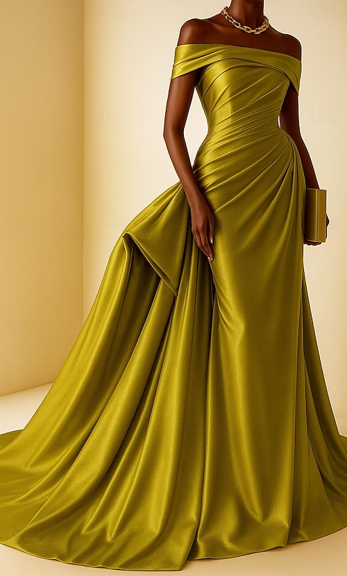 Ligne A Sirène Trompette Traîne Courte Longueur au sol Robes de Bal Robe de Soirée Tenue de soirée Élégant Scintillant Style Célébrité Sans manches Épaules Dénudées Fête de jardin Mariage Satin avec #13130952