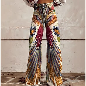 Női bő lábú chinos laza nadrág divat utcai viselet bohémi stílus teljes hossz magas derék virágos grafikai absztrakt rugalmas deréknyomtatás kényelmes puha komfortos mikrorugalmas kültéri nyaralás