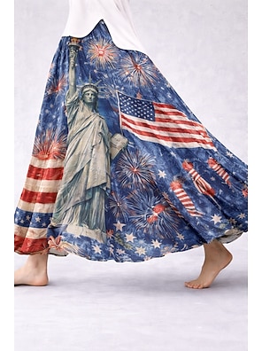 női 250. függetlenség ünnepi vakációs szoknya divatos lezser maxi magas derekú szoknyák grafikus zsebmintás mikroelasztikus mindennapi vakációs kék piros tavaszi 95% poliészter 5% spandex