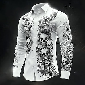 FĂ©rfi Koponya Costumes Ing SĂĄvoly Ing Ruha Ing HosszĂș UjjĂș SötĂ©t Gotikus StĂlus Ănnep NyĂĄr Tavasz Ćsz Pöttyös 3D Nyomtatott Gombos Ingek KĂ©k Zöld Khaki SzĂŒrke