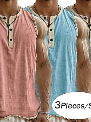3 darabos, több darabos csomagos férfi trikó, ujjatlan mellény, henley ing, nyári, egyszerű, divattervező, alapvető, lezser, vakációs, utcai, A B C felső, férfiaknak