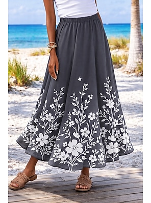 Per donna Gonna da vacanza Elegante Moda Casual Maxi Vita Alta Gonne Floreale Grafico Tasca Stampato Micro-elastico Quotidiano Spiaggia Nero Cachi Estate 95% poliestere 5% spandex