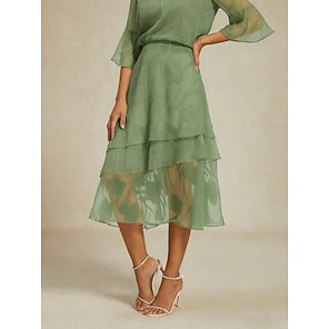 Dames Kanten rok Elegant Midi Medium Taille Rokken Bloemig Meerlaags Elastische tailleband Illusie Kant Rekbaar Dagelijks Valentijnsdag Shale Green Zomer Polyester