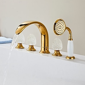Gullfarget baderomskran 360° fem hull bredt krystallhåndtak baderomsvaskkraner retro vintage toalettservantkran