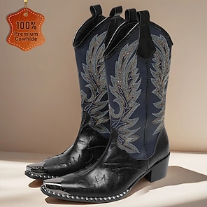 Svarte cowboystøvler i skinn til menn – høye, broderte støvler i westernstil for rodeo, ridning og countrymusikkarrangementer
