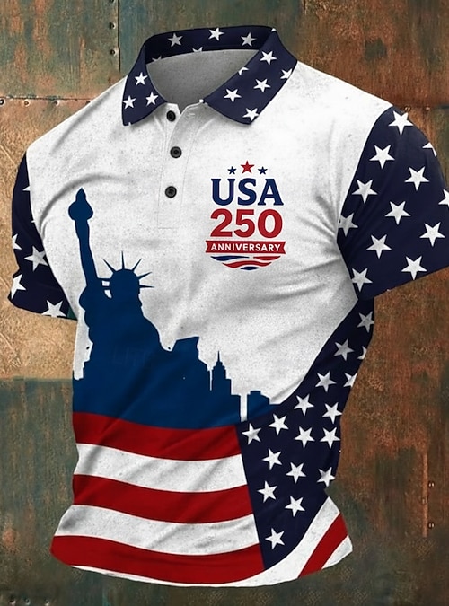 American Independence Day Men's American US Flag Polo Short Sleeve Polo Shirts Lapel Casual Athleisure Festival Outfit 3D Print Buttons Summer Blue #10820061