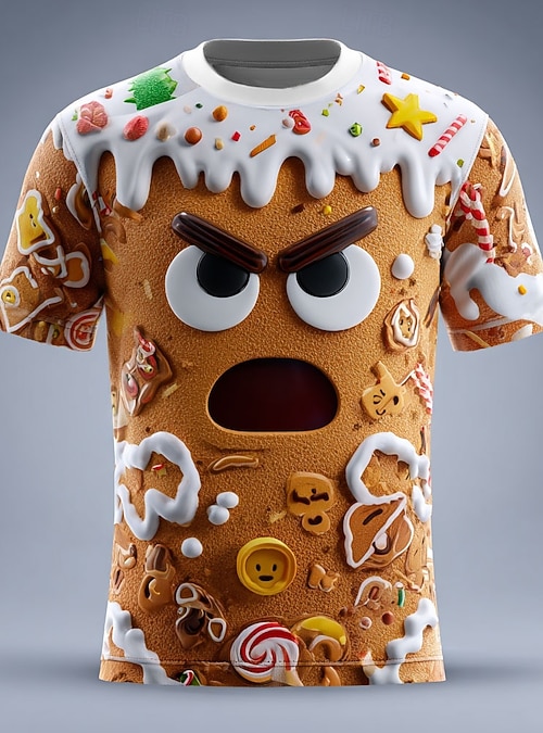 Christmas Men's 3D Gingerbread T Shirt Short Sleeve T shirt 3D Print Crew Neck Shirt Daily Designer Artistic Vacation Party Street Brown Brown 2 Brown 4 All Seasons Clothing Apparel S M L XL XXL XXXL #13047531