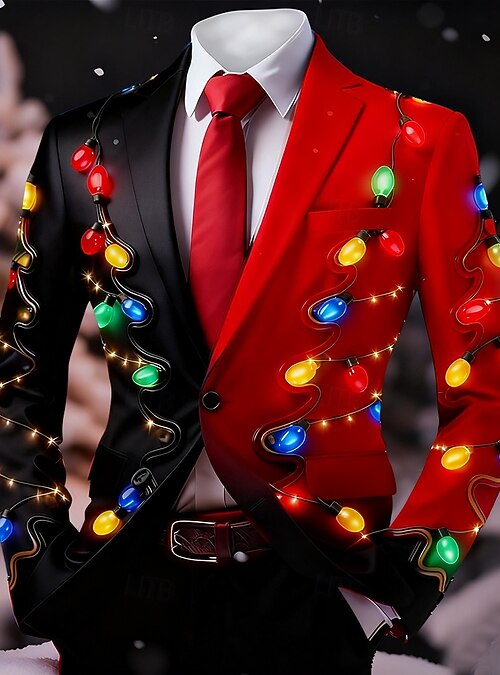Christmas Men's Christmas Pattern Blazer Jacket Coat Comfortable Breathable Artistic Casual Party Evening Wear Daily Festival 3D Print Buttons Fall & Winter Notch Long Sleeve Red 1 Red Blue #19447382