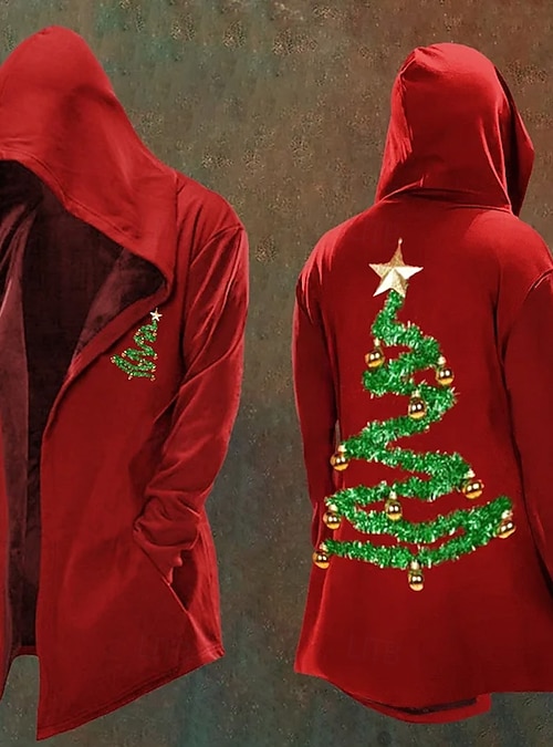 Christmas Men's Christmas Tree Winter Coat Fleece Jacket Coat Thermal Warm Comfortable Casual Daily Wear Zipper Pocket 3D Print Fall Winter Hooded Long Sleeve Red #18238522