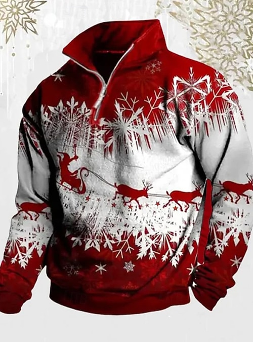 Christmas Men's Elk Snowflake Zip Polo Shirts Long Sleeve Polo Shirts Lapel Casual Outdoor Festival Outfit 3D Print Fall Winter Black Red Green #10655428