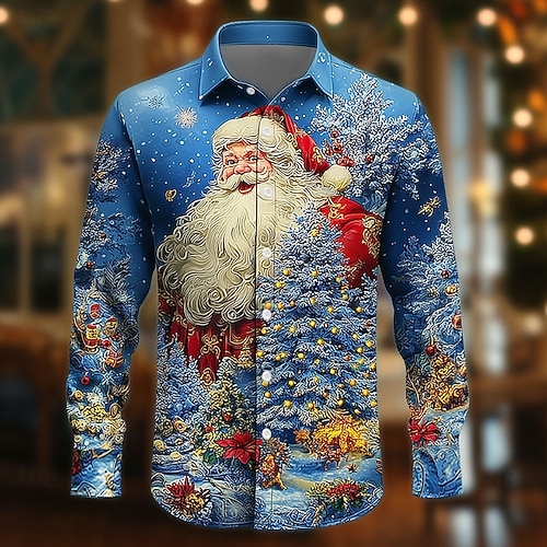 Christmas Men's Santa Claus Christmas Tree Christmas Gift Shirt Button Up Shirt Long Sleeve Funny Outdoor Holiday Spring Fall Turndown 3D Print Collared Shirts Blue 3# Blue 2# Blue 1# Blue #11289725