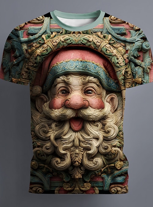 Christmas Men's Santa Claus T Shirt Short Sleeve T shirt 3D Print Crew Neck Shirt Daily Designer Artistic Vacation Party Street Pink Red Green All Seasons Clothing Apparel S M L XL XXL XXXL #14310809