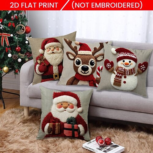 Christmas Series 4pc/1pc Pillow Cover, Holiday Decorative Cushion Case for Sofa, Living Room and Home Festive Decor, 2D flat print #10980514