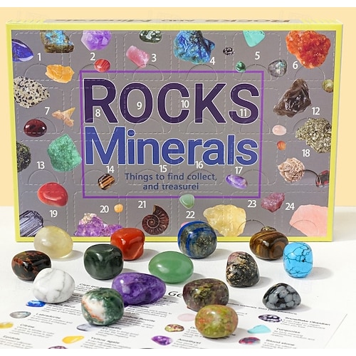 Gemstone Advent Calendar Christmas Gift 24 Days Crystal Countdown Calendar with Raw & Tumbled Stones, Natural Healing Crystals Gift Set for Adults & Kids #10959576
