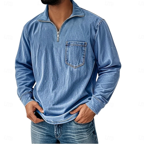 Men's Casual Shirt Polo Shirts Casual Zip Long Sleeve Vintage Vintage Style Retro Spring Fall All Seasons Regular Fit Black Pink Navy Blue Purple Khaki Army Green Casual Shirt #10526059