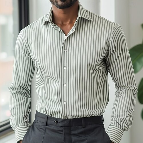Men's Geometric Striped Shirt Button Up Shirt Casual Dress Shirt Long Sleeve Business Casual Outdoor Dailywear Spring Fall Turndown 3D Print Collared Shirts Blue Green #13178941