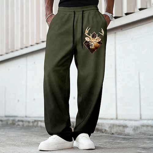 Men's Reindeer Gradient Color Sweatpants Trousers Casual Pants Mid Waist Vintage Retro Outdoor Hunting Workout Elastic Drawstring Waist Straight Leg Pants with Pockets Spring Fall 3D Print Brown #11330231