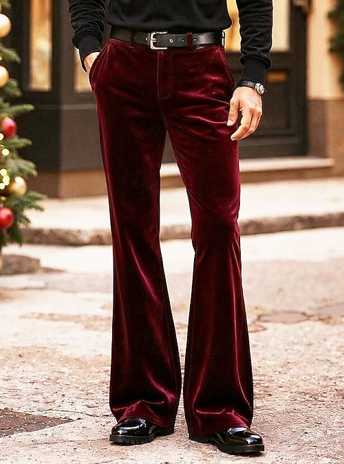 Men's Christmas Pants Trousers Dress Pants Velvet Pants Pocket Buttons Plain Comfort Christmas Party Business Fashion Casual Blue Black Micro-elastic #14012560