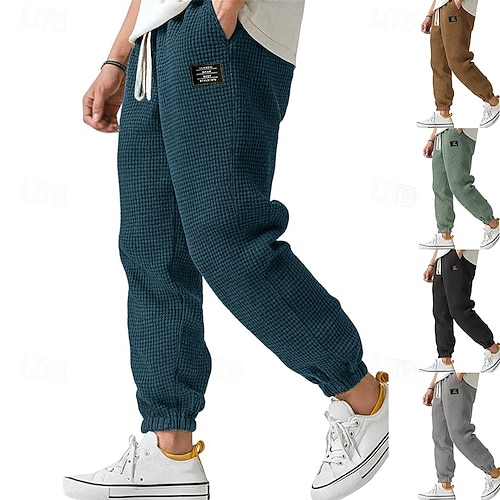 Men's Waffle Sweatpants Joggers Trousers Casual Pants Drawstring Solid Color Comfort Full Length Outdoor Daily Streetwear Fashion Classic Style Lake blue Black Stretchy #14569783