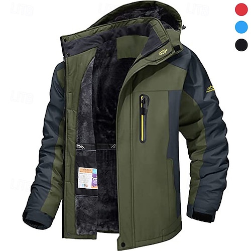 Men's Winter Jacket Fleece Jacket Softshell Jacket Windbreaker Climbing Snow Sports Thermal Warm Waterproof Hooded Waterproof Winter Autumn / Fall Sportswear Regular Red Army Green Light Black Light #8219363