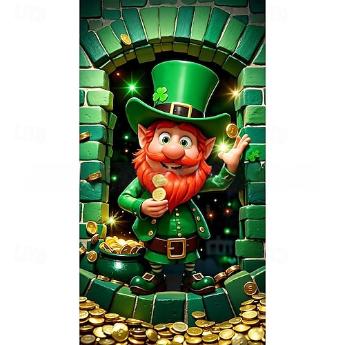 علم غطاء باب عيد القديس باتريك، زينة شرفة على شكل نبتة برسيم خضراء رباعية الأوراق، قماش لمدخل المنزل في موسم الأعياد، ديكور عيد القديس باتريك. #14583675