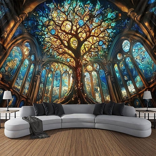 Tree of Life Hanging Tapestry Wall Art Large Tapestry Mural Decor Photograph Backdrop Blanket Curtain Home Bedroom Living Room Decoration Stained Glass Cathedral #19151792