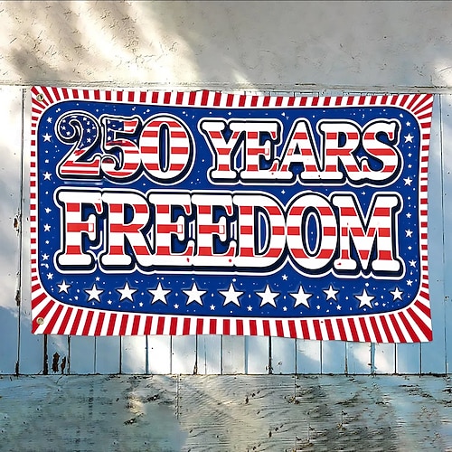US 250th Anniversary Flag "250 Years of Freedom" Banner with Stars and Stripes Design Patriotic Commemorative Decor for Semiquincentennial Celebrations 4th of July Independence Day #19525742