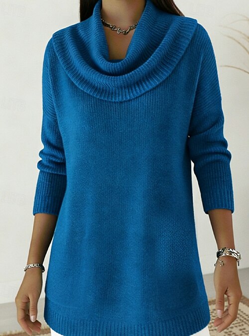 Women's Sweater Pullover Streetwear Casual Solid Color Cowl Pocket Knitted Long Sleeve Regular Tops Knit Daily Going out Weekend Blue Wine Red Fall Winter #17356276