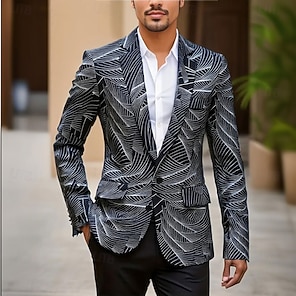 Męskie Płaszcz Marynarka Biznes Codzienne W stylu brytyjskim Na każdy sezon 100% poliester Graficzny Druk 3D Guziki Wygodny Guziki jednorzędowe Blezer Czarny Biały Niebieski
